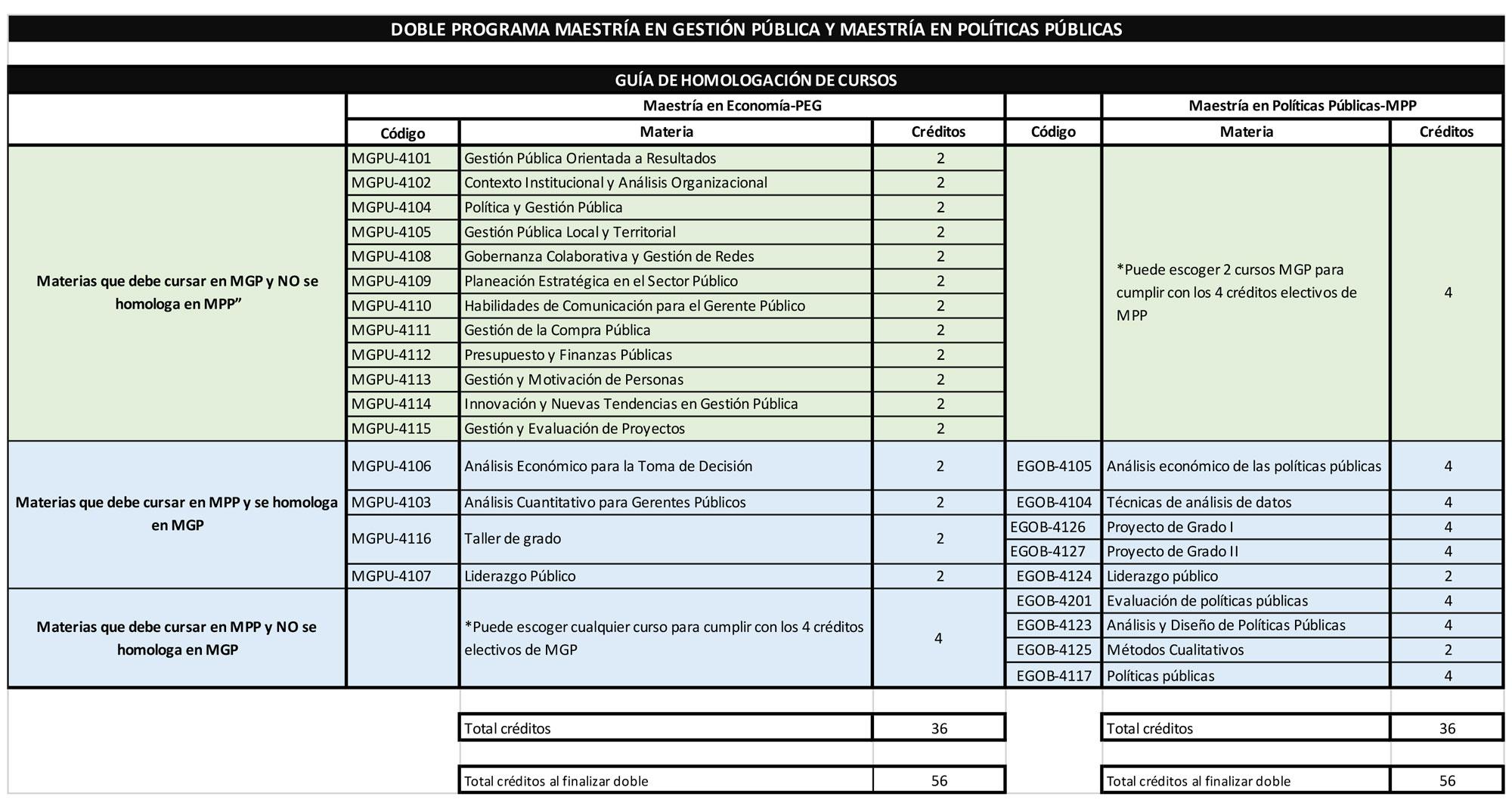 El siguiente es el recorrido académico común para los estudiantes que deseen realizar el doble programa entre las maestrías en Gestión Pública y en Políticas Públicas